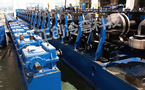 此設(shè)備第一步是要把原材料裝在開卷機上,然后自己手動送入主機,最后再由主機上的模具和一些特殊的輔助成型裝置,從而逐步形成一定的幾何形狀,再由切斷機構(gòu)定長切斷,達(dá)到用戶對該產(chǎn)品的使用要求。